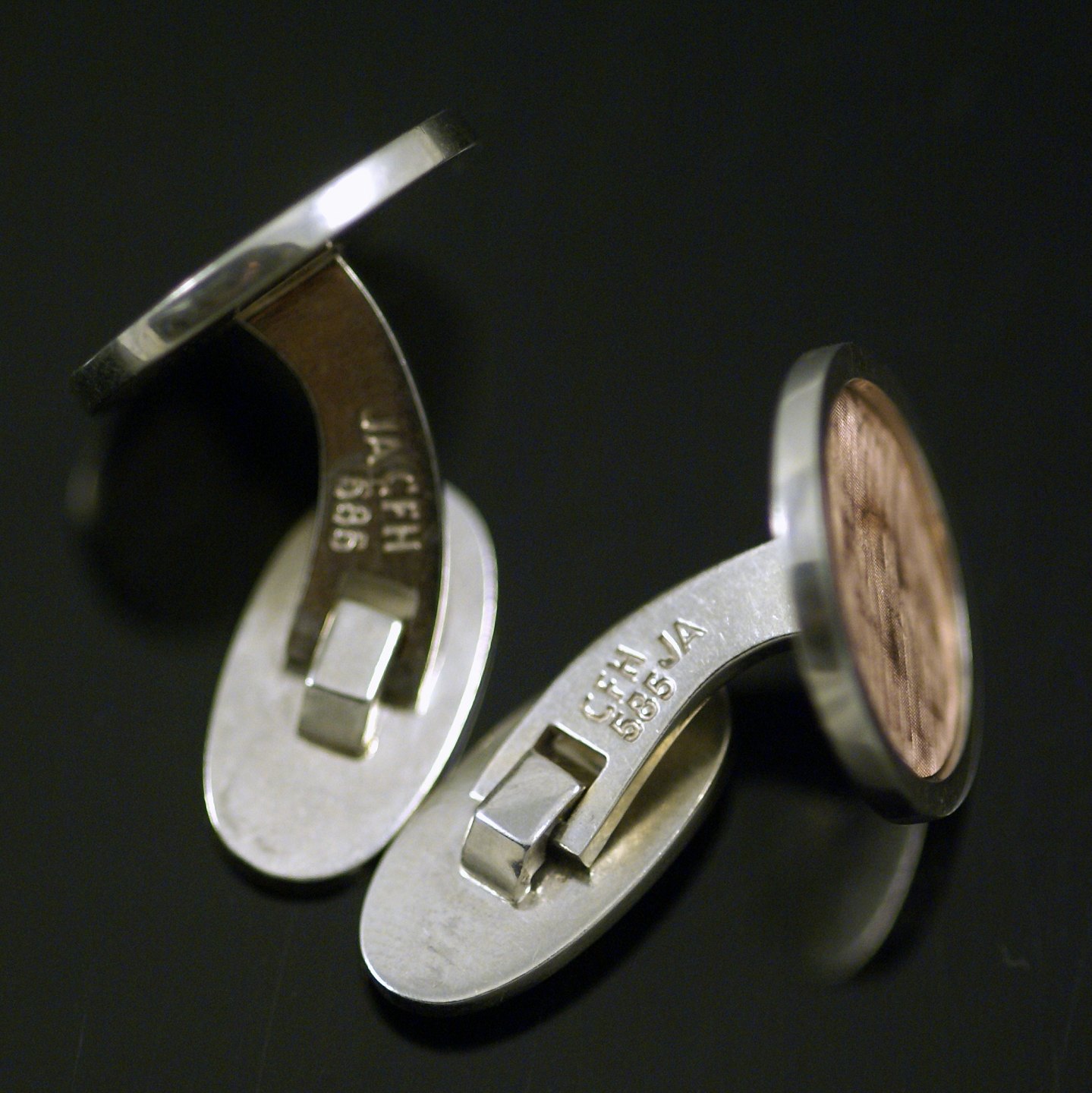 Christian Frederik Heise. Manchetknapper i 14k hvidguld og rødguld.