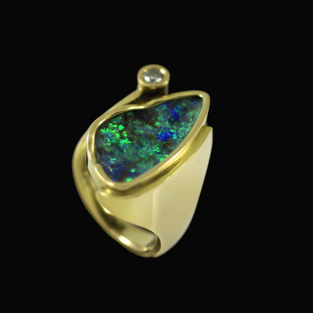 Henrik Skjønnemand Larsen. Ring i 18k guld med Opal og 0.15ct. diamant.