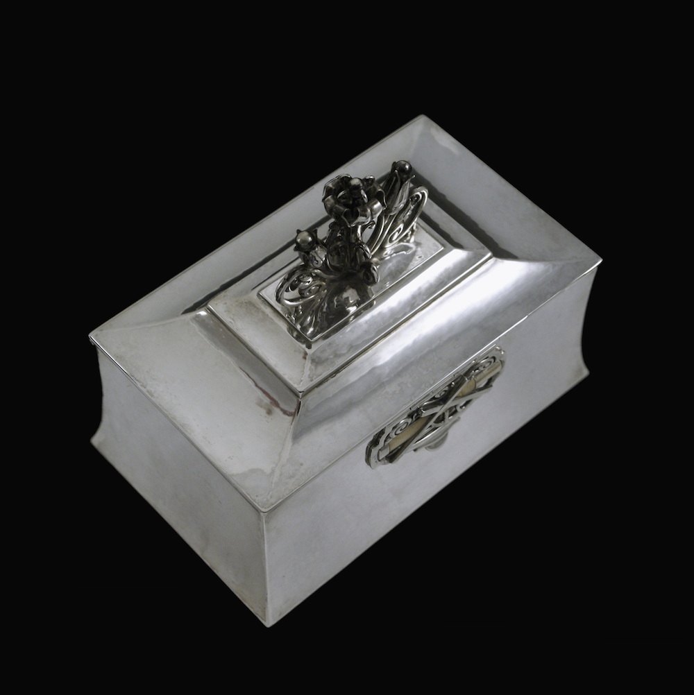 Kay Bojesen 1886-1958. Cigaretæske i sølv med elfenben og guld.