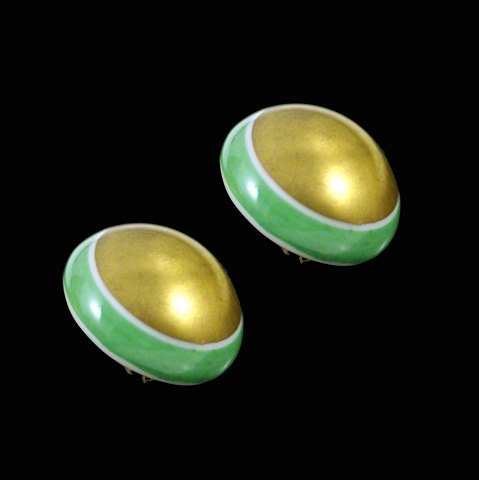 Royal Copenhagen. Øreclips i forgyldt Sterling Sølv med porcelæn.