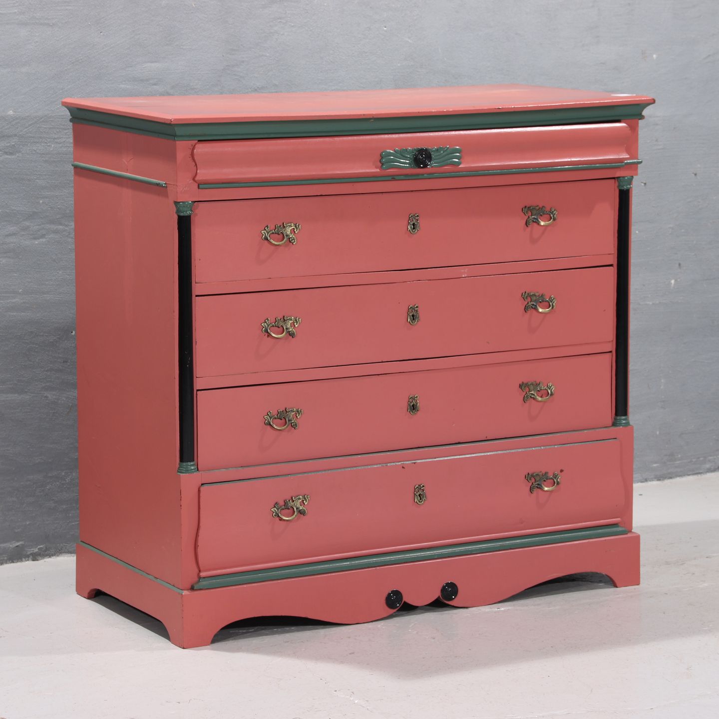 Malet dragkiste i fyrretræ m. 5 skuffer, (HxBxD 117x125x60 cm), 1880-1890