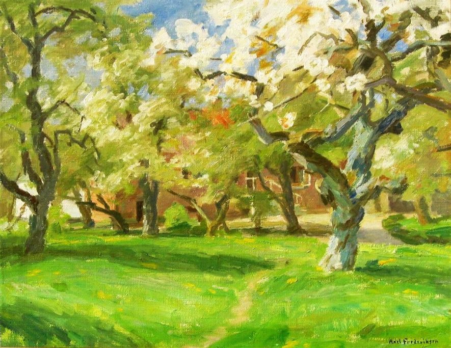 Frederiksen, Axel (1881 - 1961) Danmark: Blomstrende træer i en have