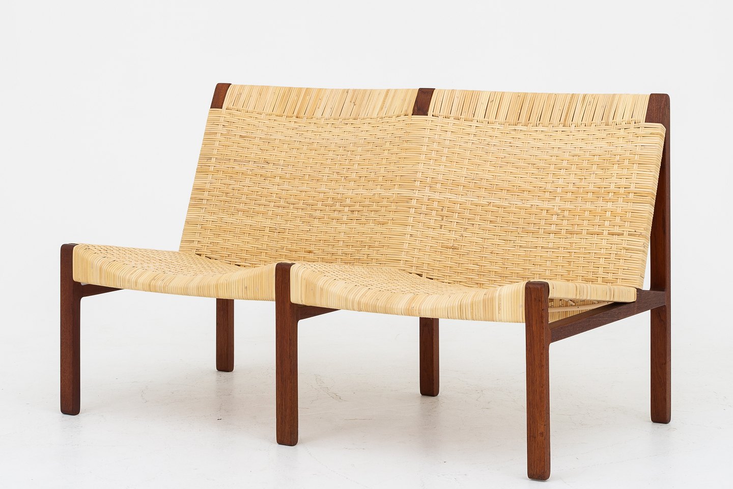 2-seater bench in teak w. new cane