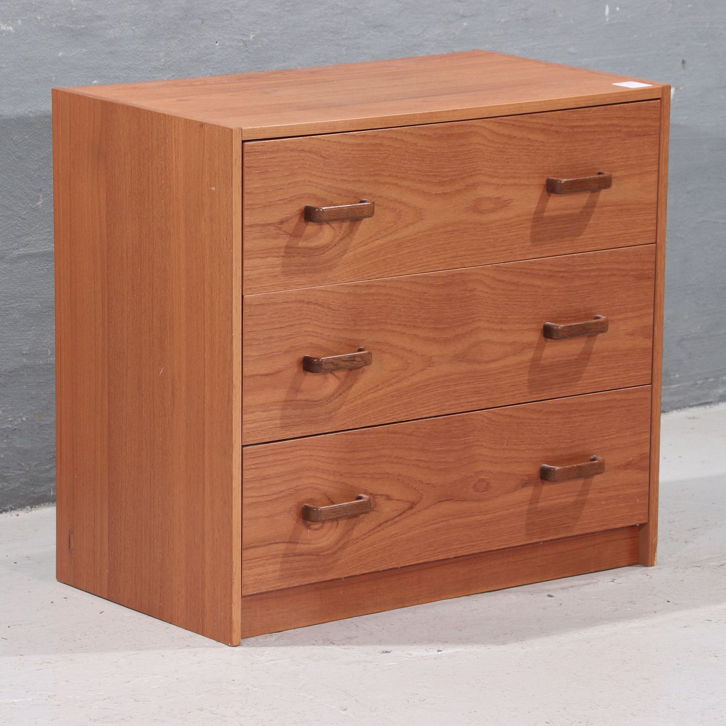 Kommode i teaktræ m. 3 skuffer, (HxBxD 73x74x45 cm), ca. 1980