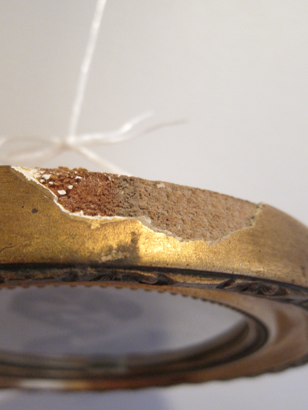 Antik smuk, oval ramme med bladguld, inkl. gammelt foto.