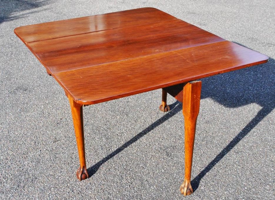 Stort dansk poleret klapbord i mahogni, 19. årh. Ben med claw and balls. H.: 72 cm. L.: 110 cm. B. 57 cm. Kalppernes bredde: 40 cm.