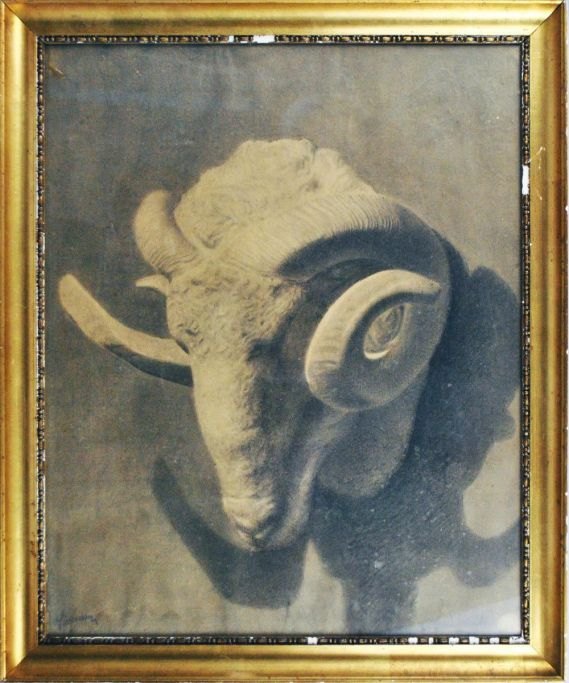 Axelsen, Marie (19th century): A ram. Lead on paper. Signed Marie Axelsen. 52 x 41 cm.