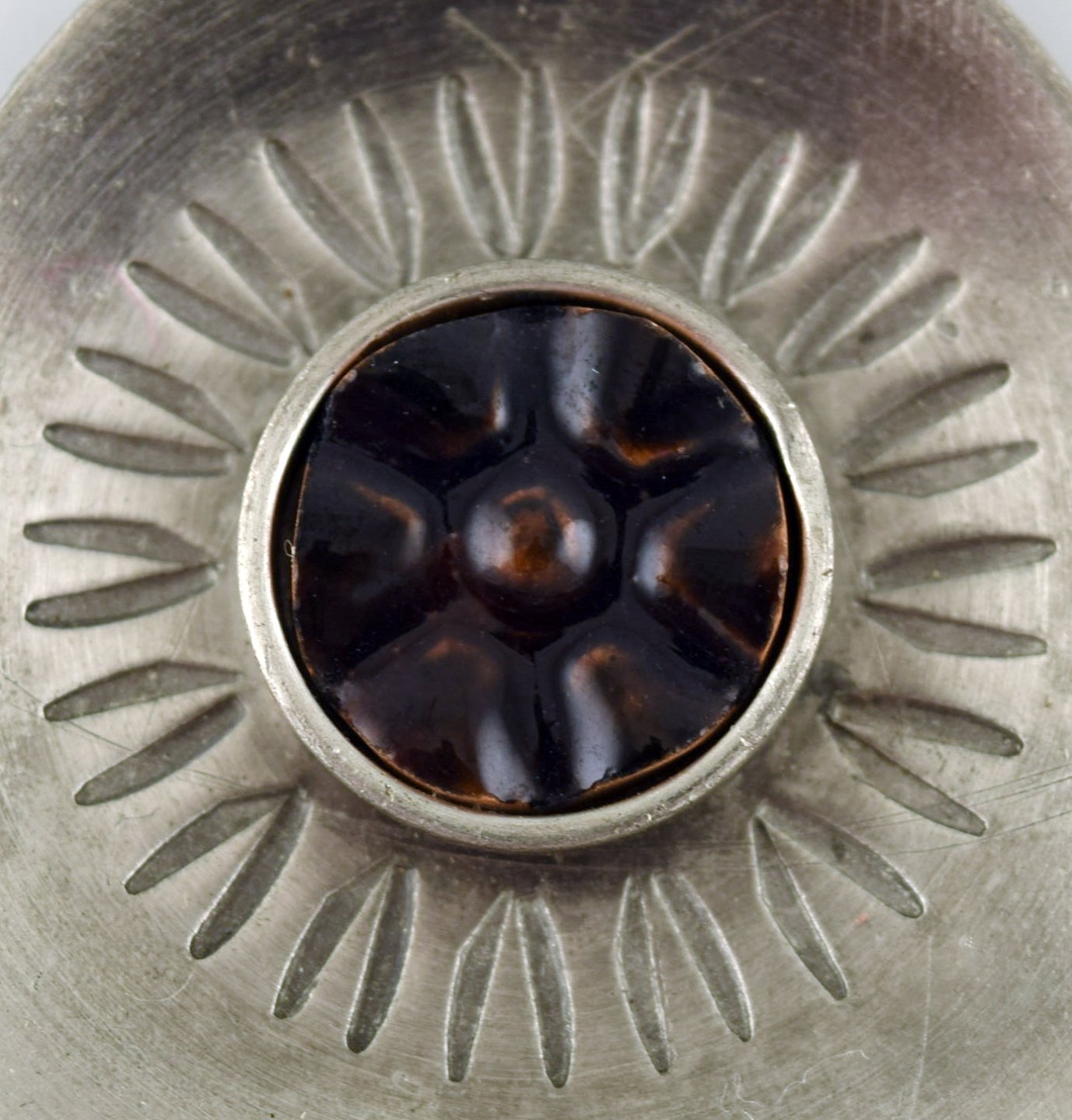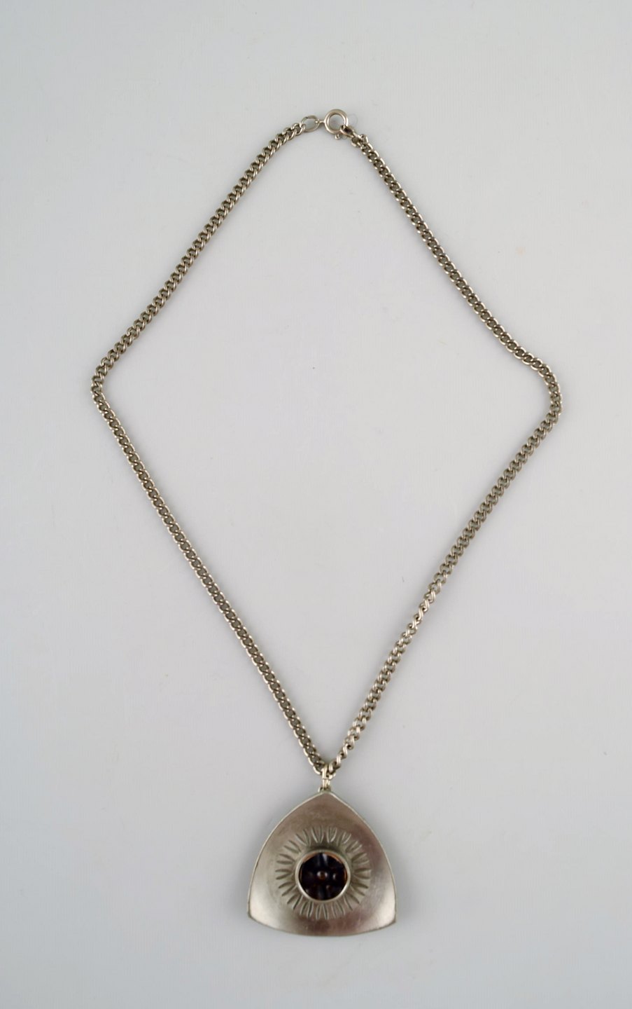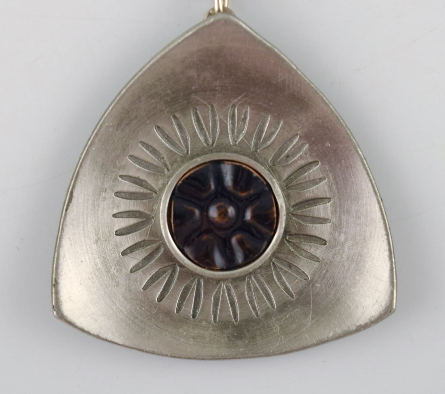 Lysgårds design. Danmark. Halskæde i tin med ravfarvet sten. Moderne design, 60/70'erne.