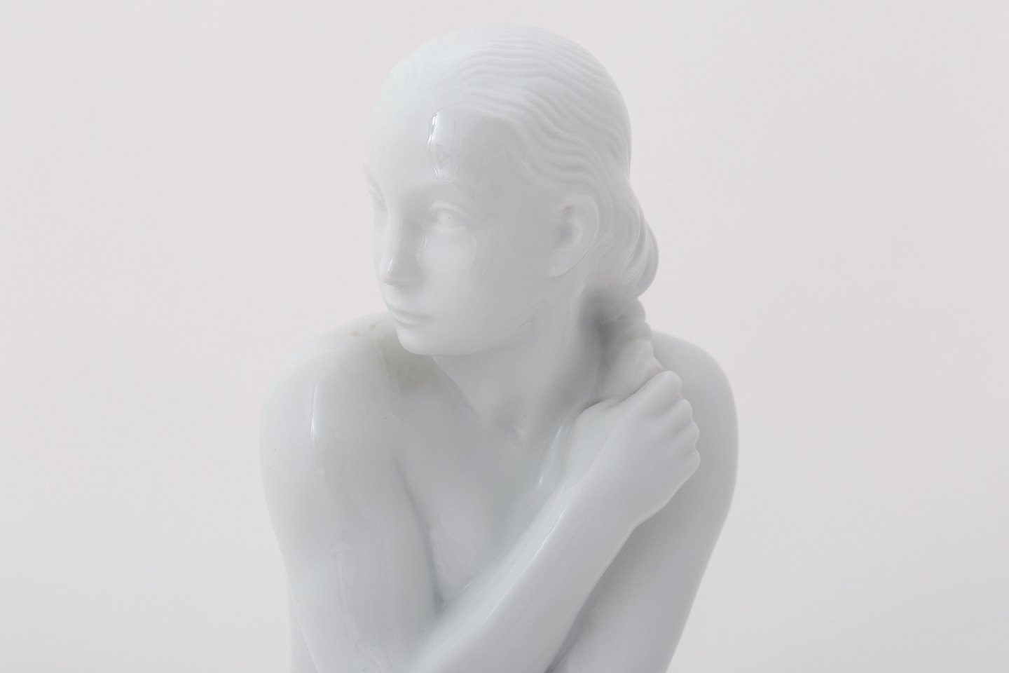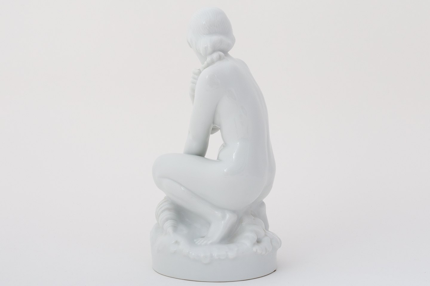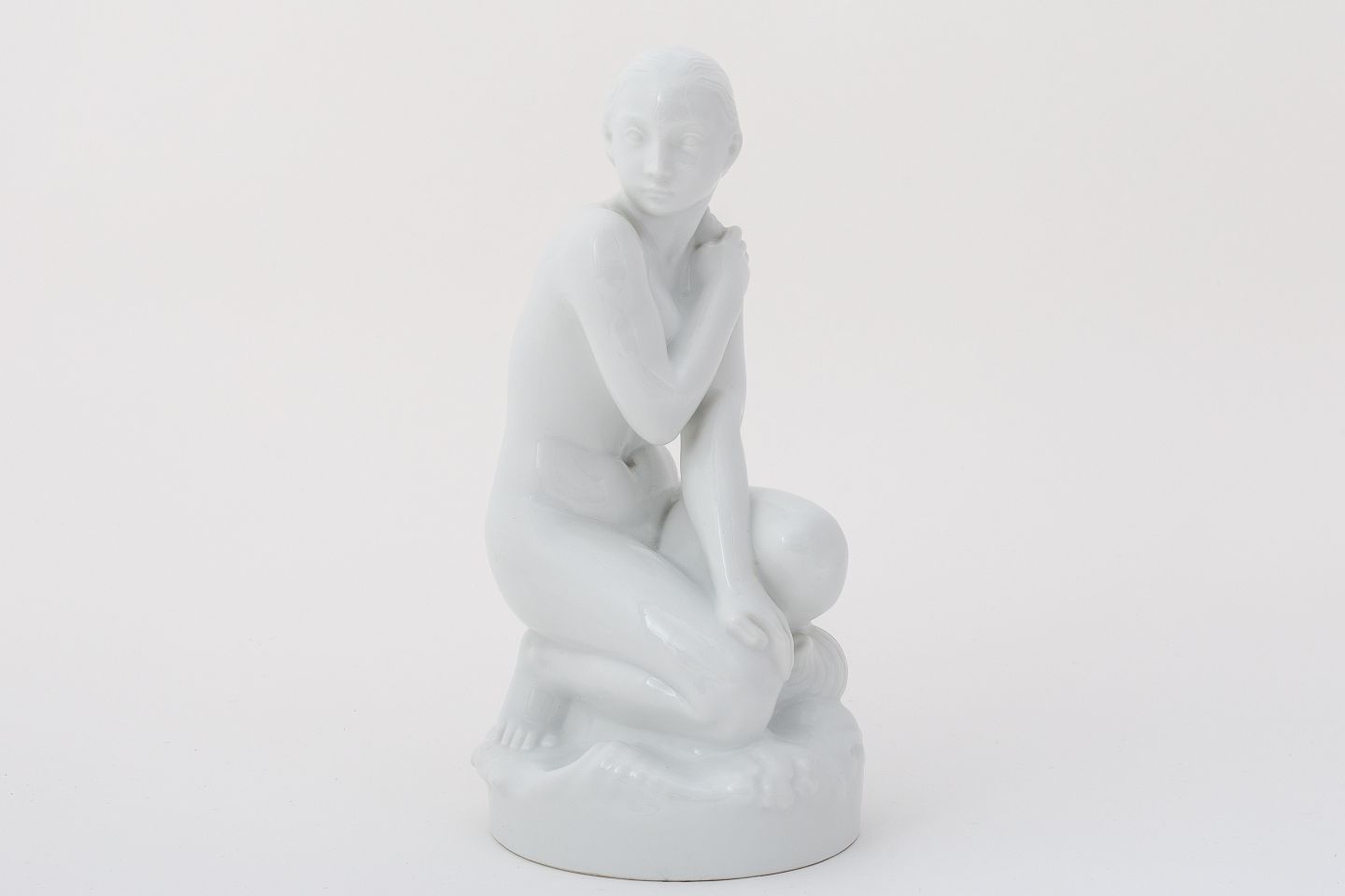 Figur af blanc de chine-porcelæn af knælende kvinde.