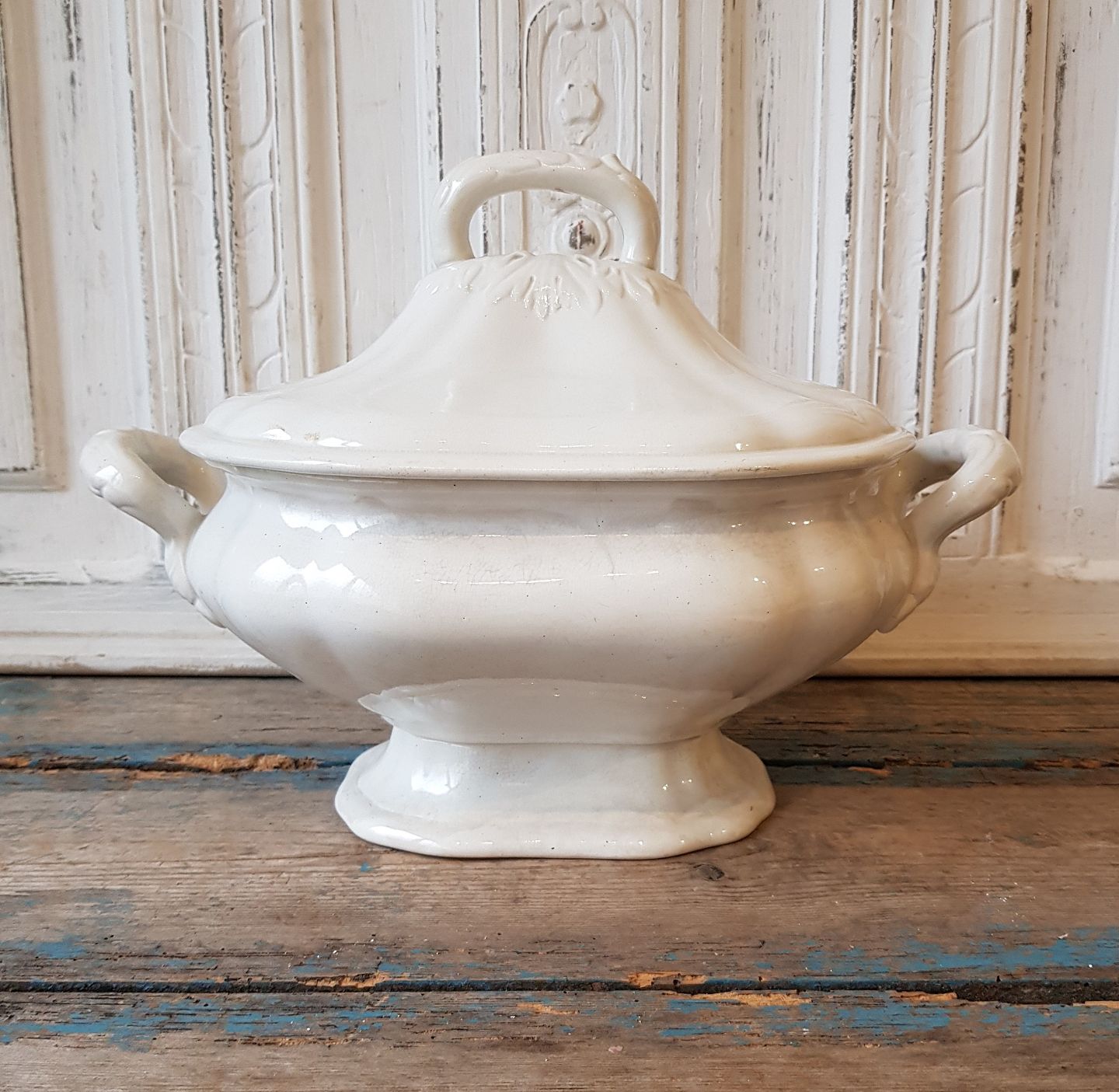 Meget smuk cremefarvet Pariser terrin fra Aluminia.