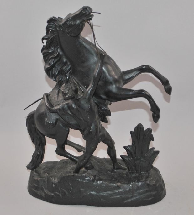 Heste betvingeren, skulptur, sortbemalet zink, 19. årh.