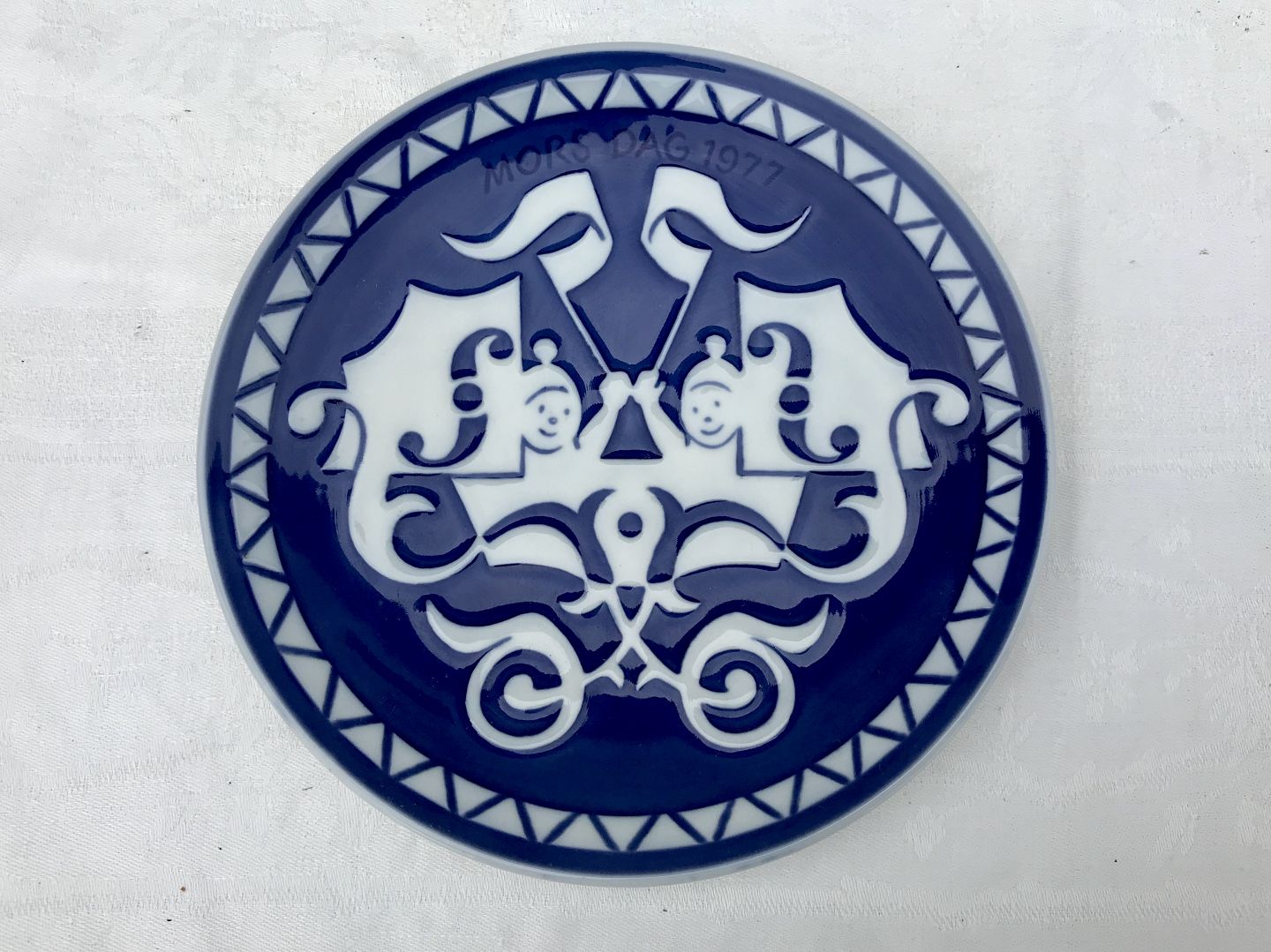 Royal Copenhagen, Mors dag Platte, 1977, Børn i barnevogn, 18cm i diameter, Design Arne Ungermann *Pæn stand*