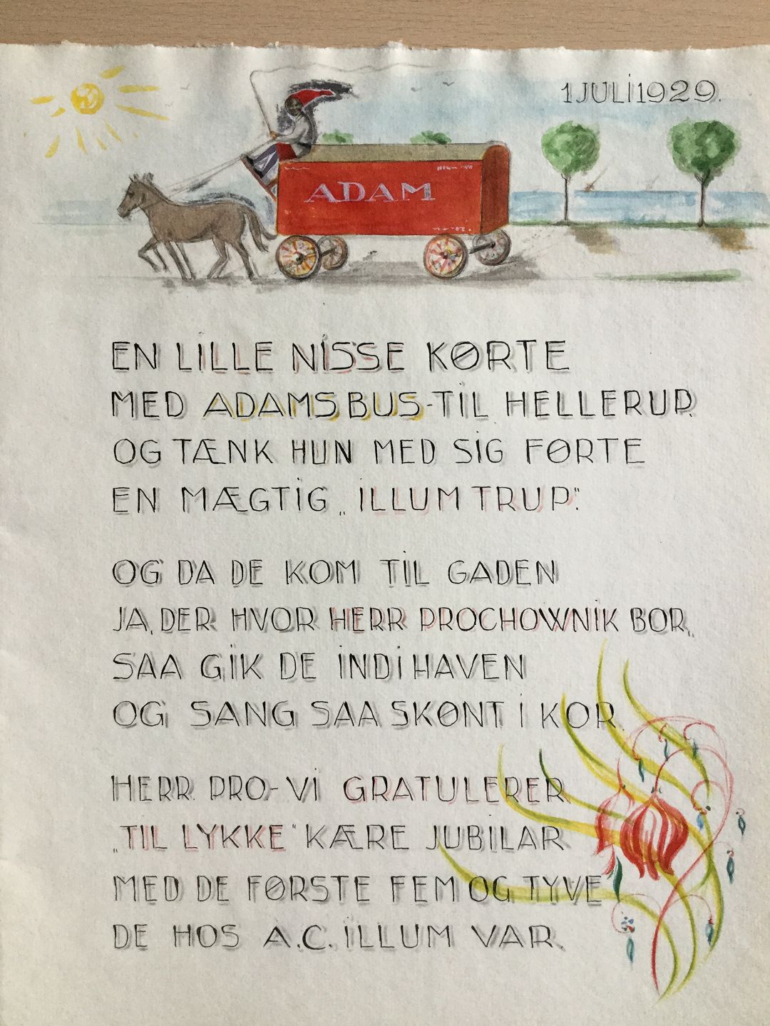 Lykønskningsdigt på 2 sider til Hr. afdelingschef Arthur Prochownik ifm 25 års jubilæum 1. juni 1929 hos A.C. Illum (nuværende Illums).