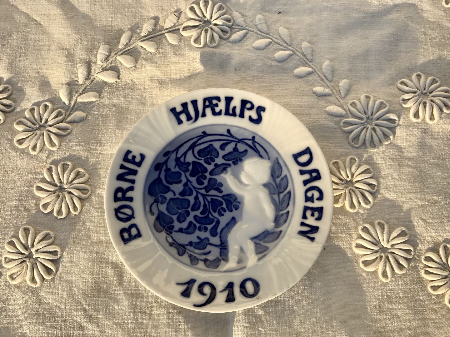 Royal Copenhagen, Children's help plate, 1910, Child and leaf hanging, 12.5cm in diameter, 1.Sorting, Design Bent Helweg-Møller * Perfect condition *