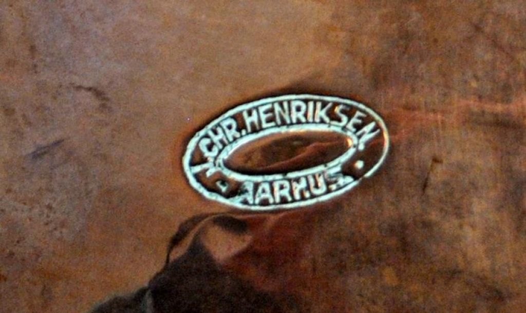 Flowerpot, 19th century Denmark. Designed by Chr. Henriksen, Aarhus. Copper. Stamped. With two handles and four legs.
