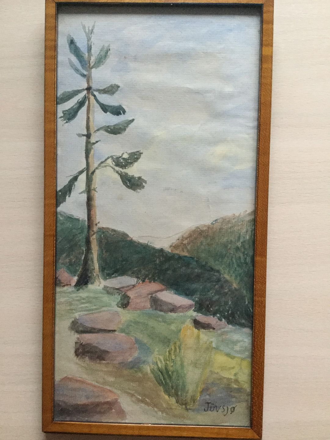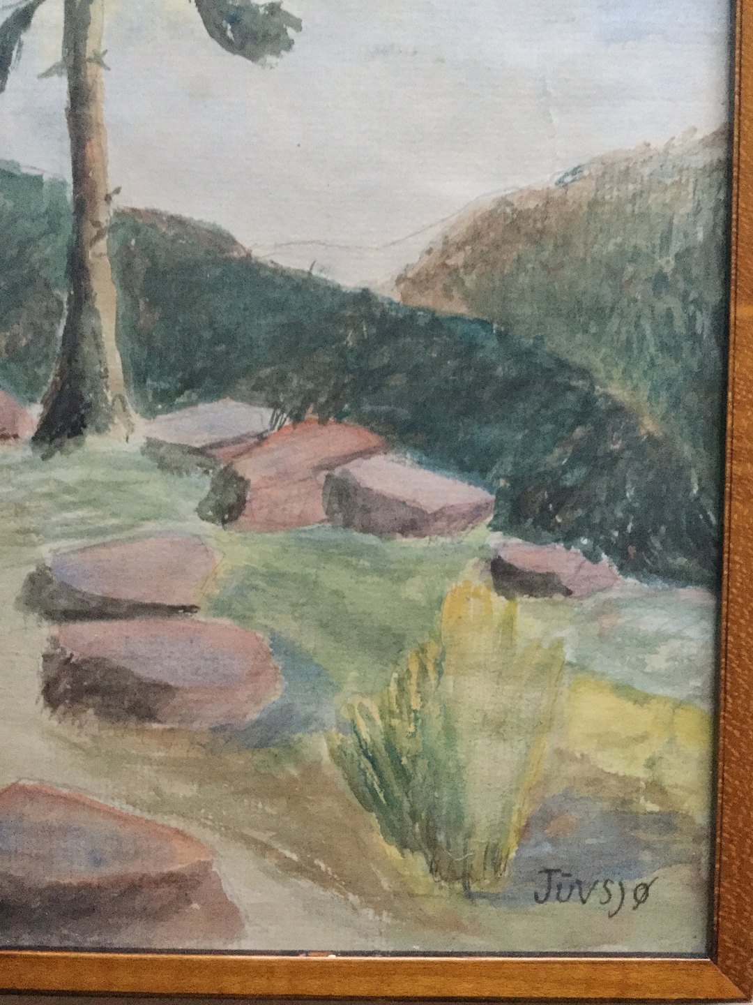 Akvarel - Parti fra Juvsjø i Norge.