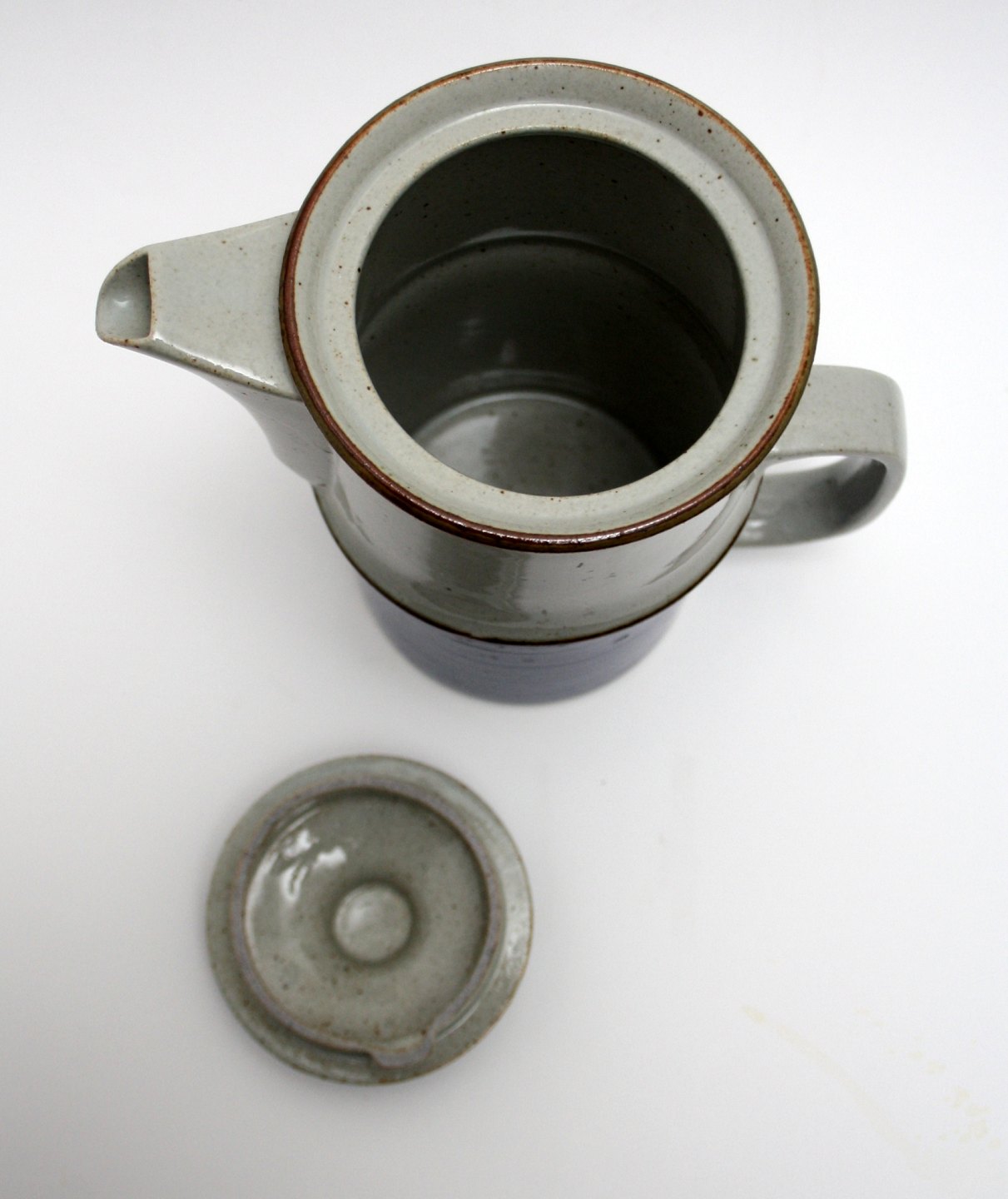 Kaffekande. Højde 21 cm. Længde 19 cm. II. sortering pga glasurfejl, hvor der på den blå bund er en mørkere farve. Fin stand. Pris: 200 kr.