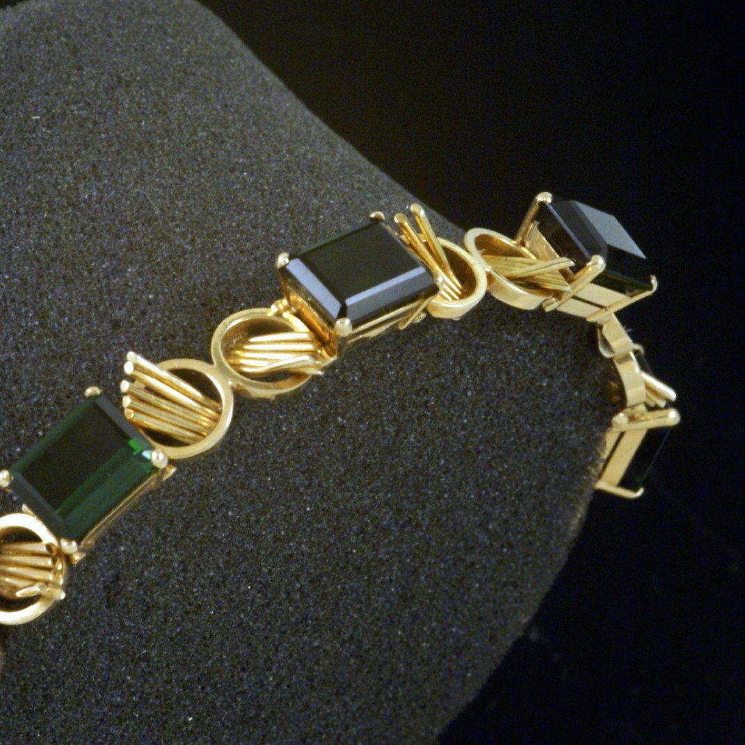 Armbånd i 18k rødguld med Smaragdslebne turmaliner.