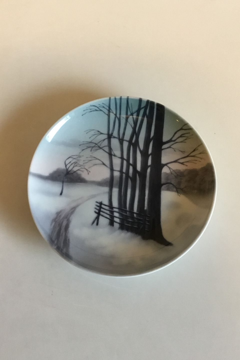 Heubach Platte dokoreret med vinterlandskab med træer. Måler 16,2 cm