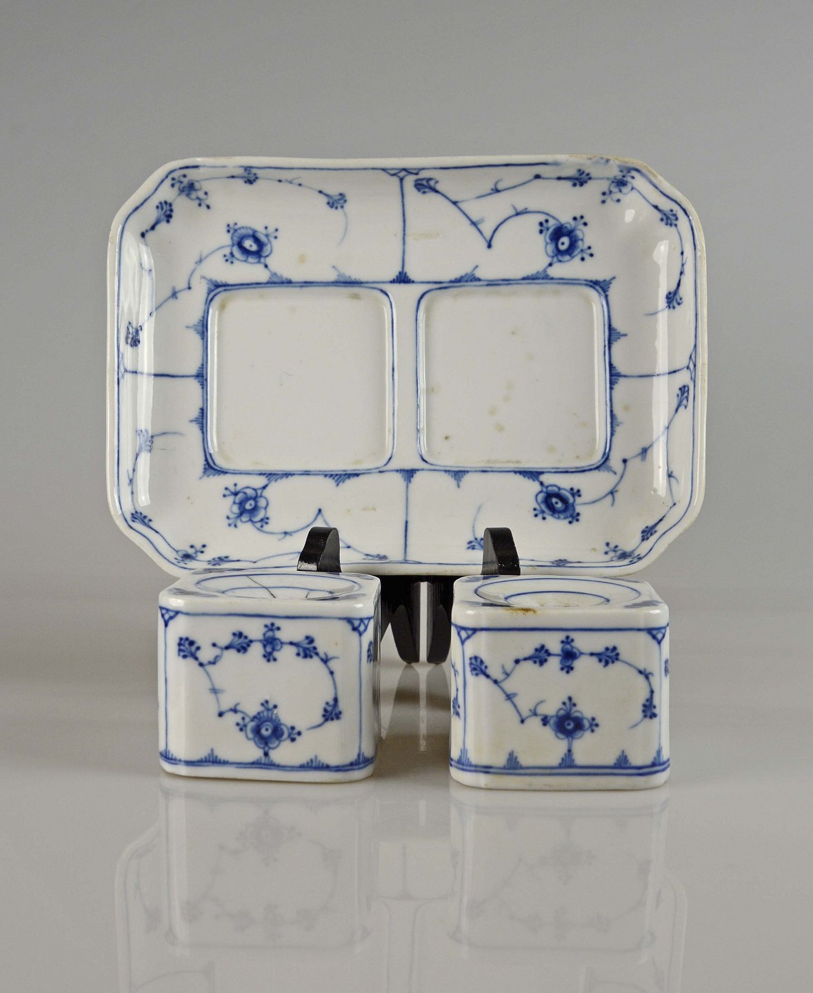 Blækhussæt, antik porcelæn, B&G antik, B&G porcelæn, Blåmalet porcelæn, Bing og Grøndahl porcelæn, B&G musselmalet