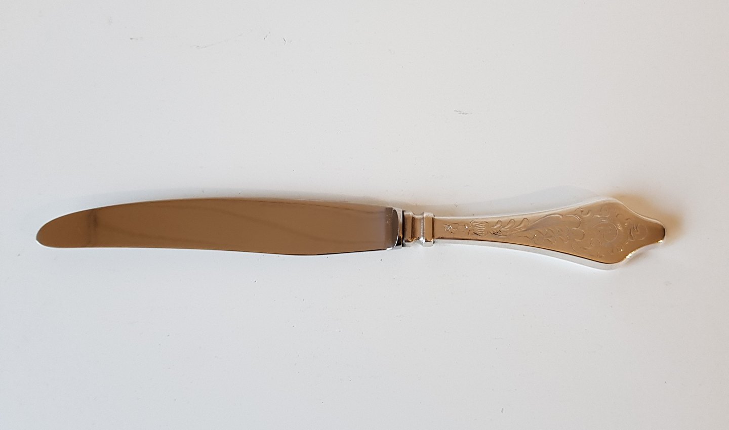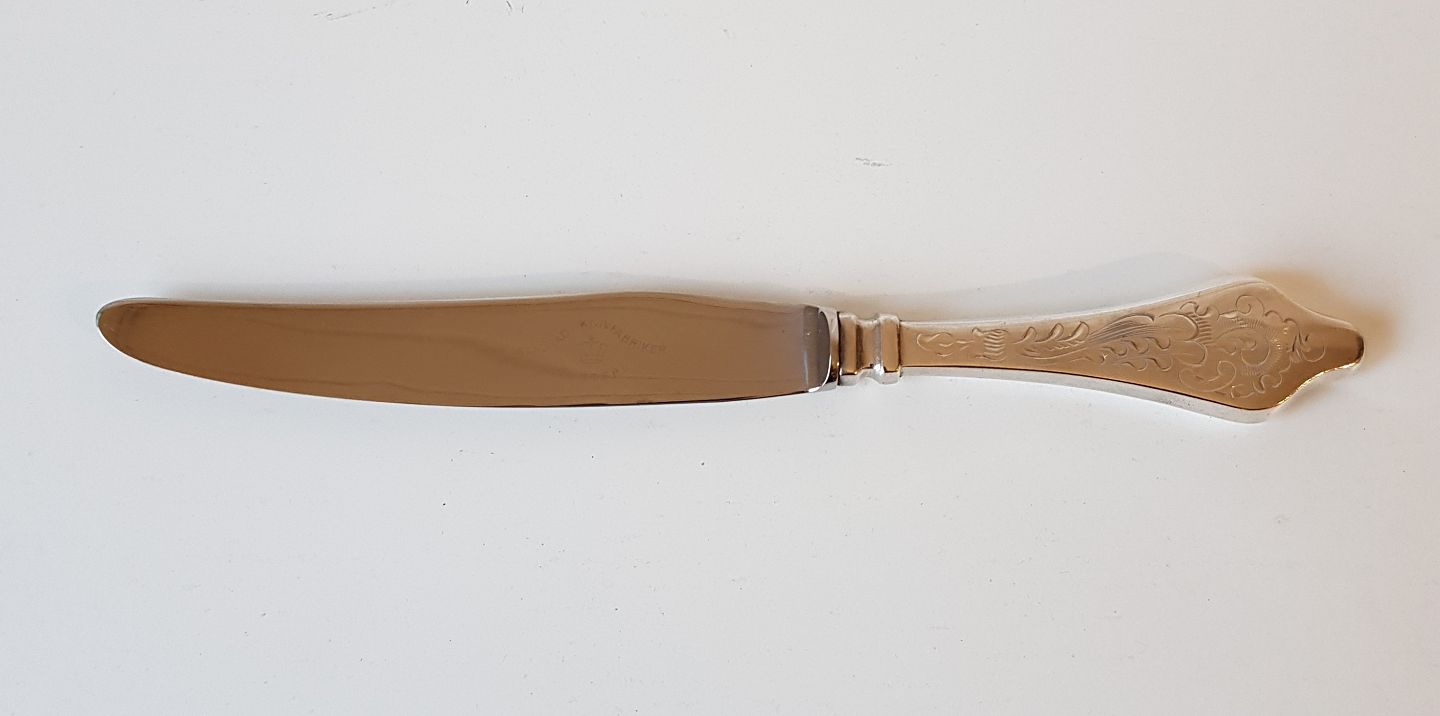 Antique Rococo silver dinner knife with long blade 25 cm.