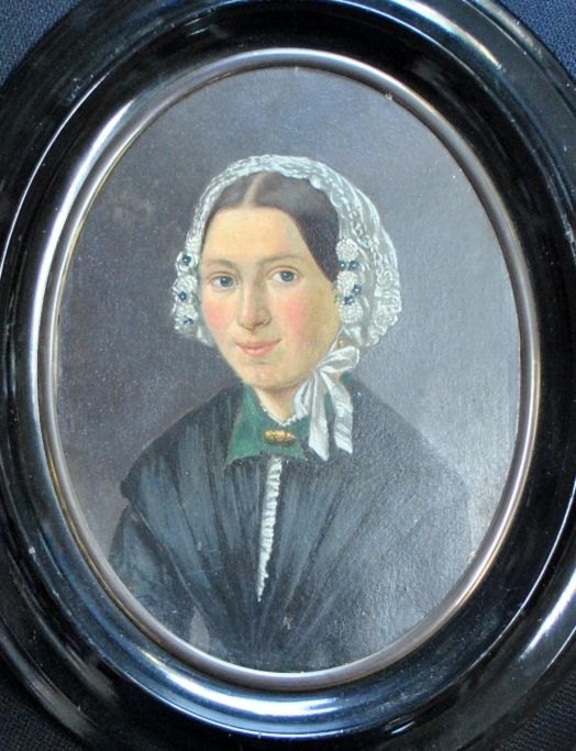 Dansk kunstner (19. årh.): Kvinde portræt. Olie på pap. Oval. Usigneret. 18,5 x 14 cm.