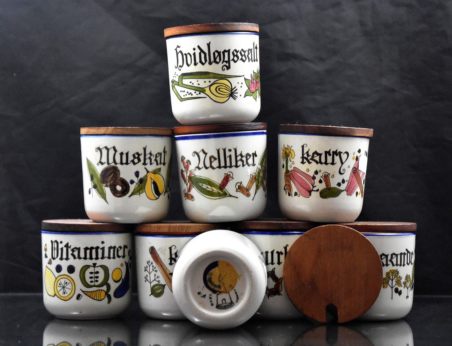 Knabstrup, små krydderi bøtter med teaktræs låg