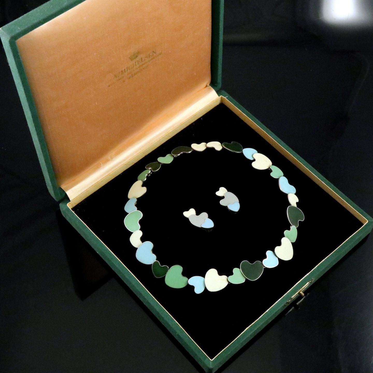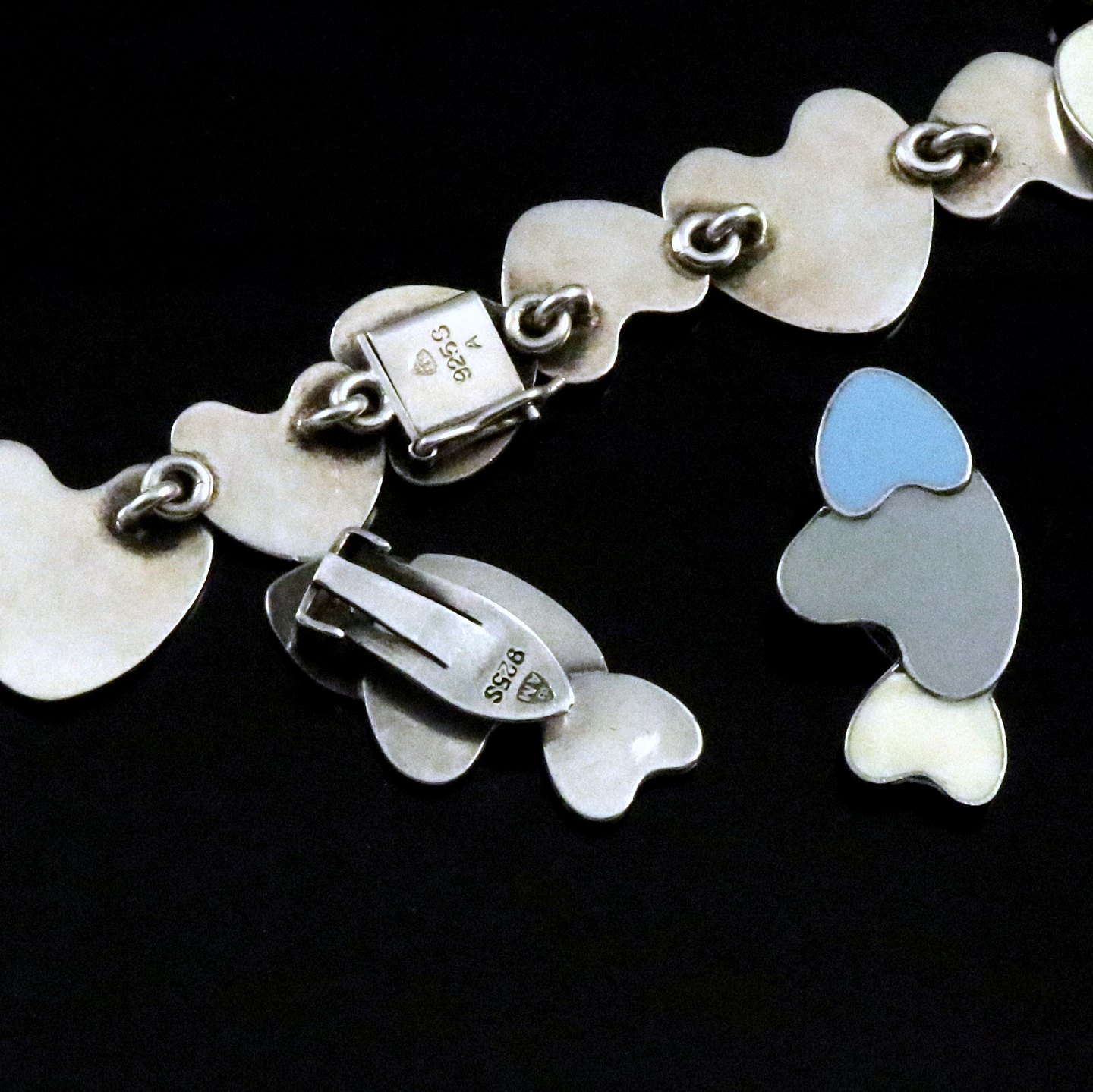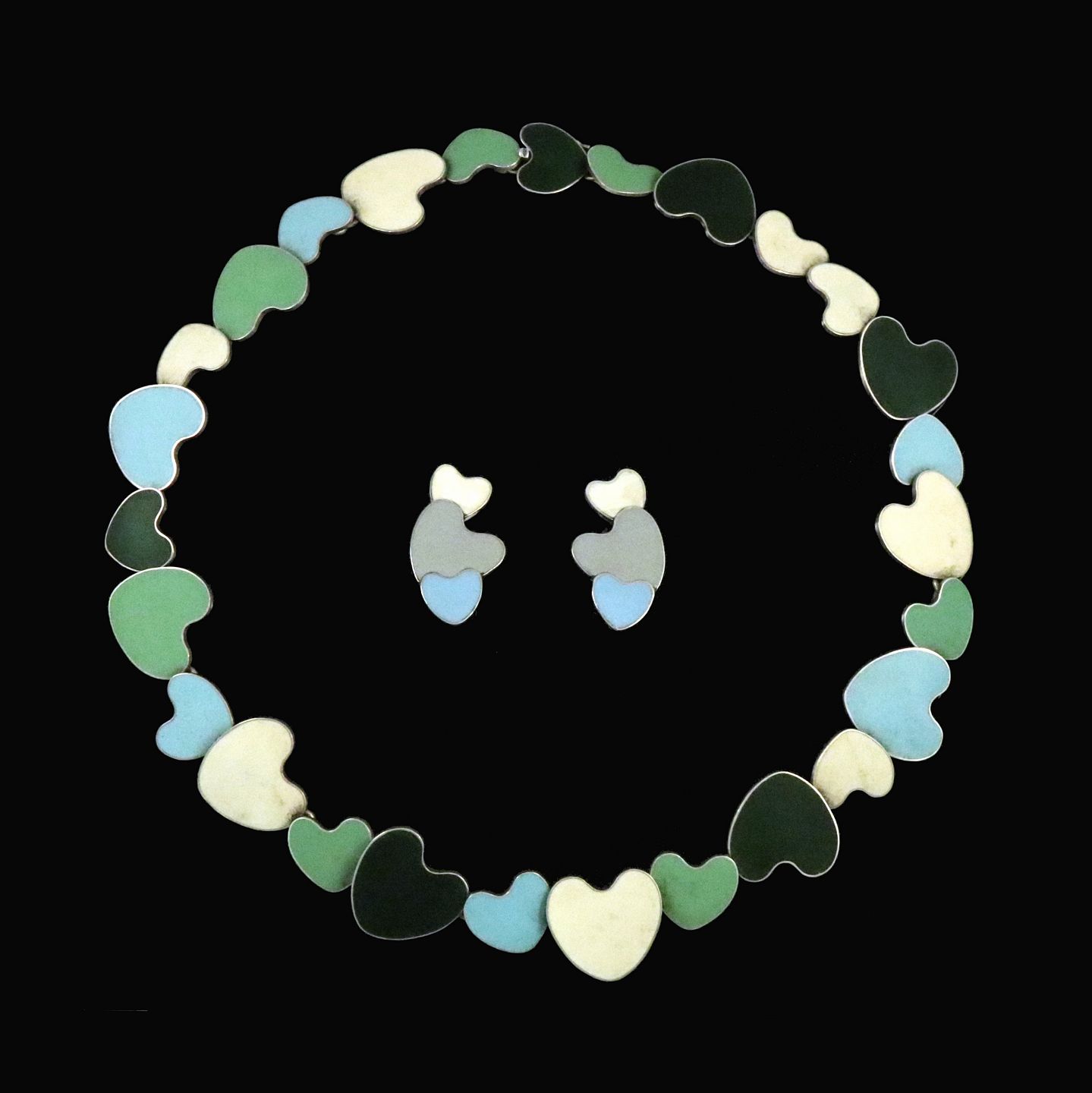 A. Michelsen. Sterling Silver and Enamel 'Heart' Necklace and Clips - Tove & Edvard Kindt-Larsen