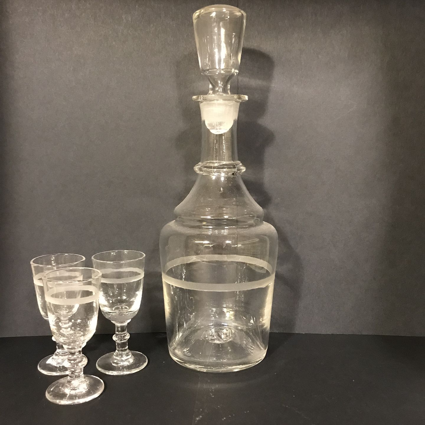 Karaffel og glas med bånd dekoration. Holmegaard.