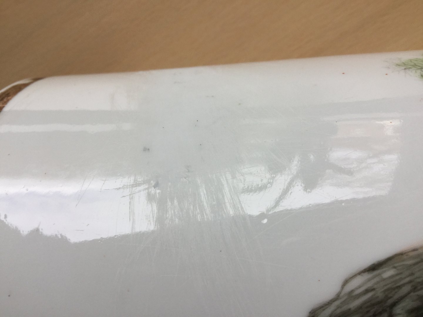 Skriftstegn forsøgt fjernet, derefter ridser (se ekstra foto)