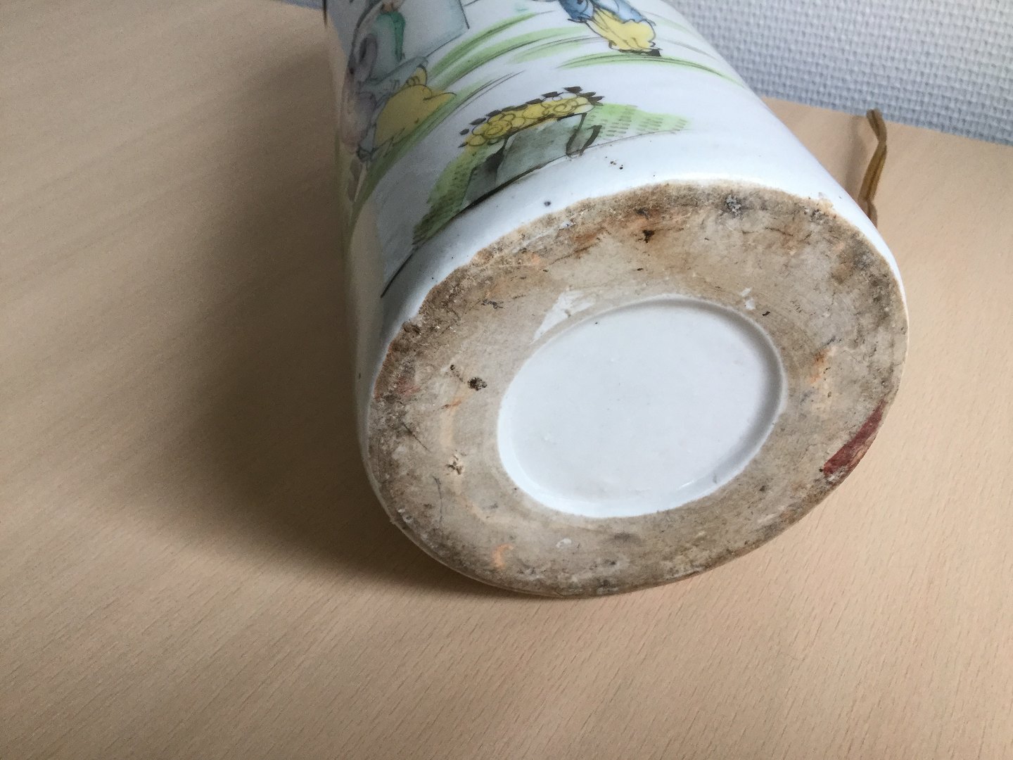 Polykromt dekoreret med personer i landskab.