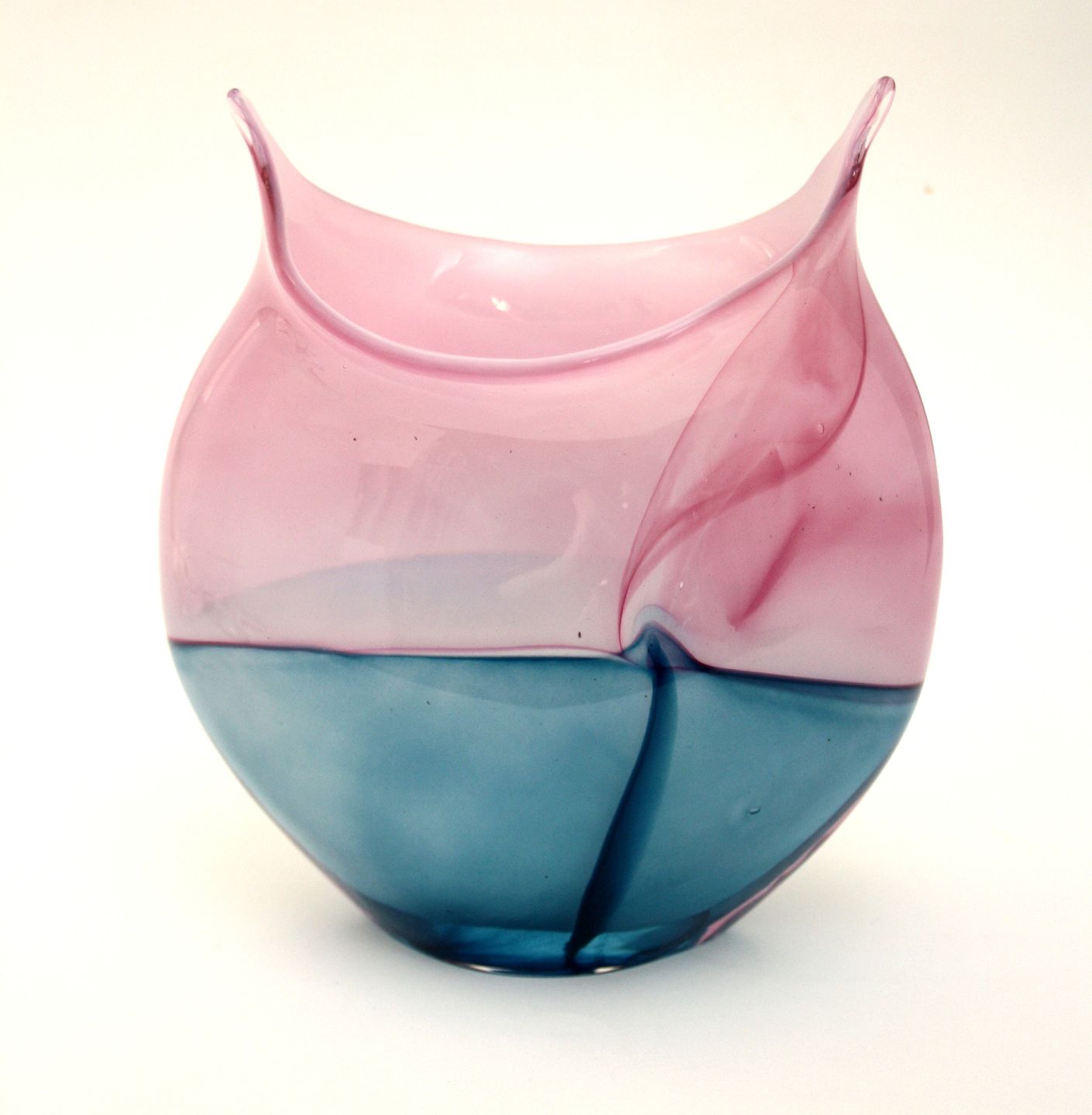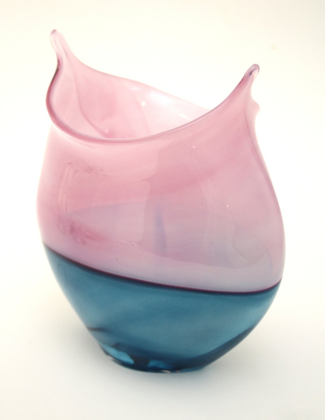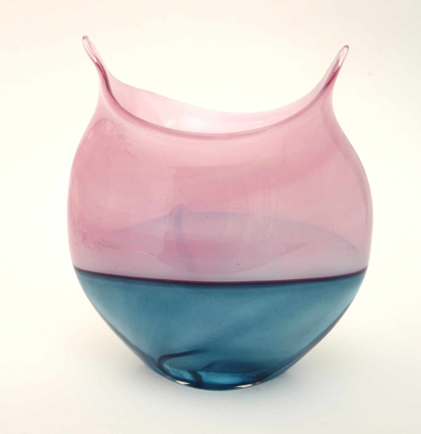 Cumulus vase i blå og pink, højde 17,5 cm. design Per Rene Larsen, holmegaard glasværk 1986. Perfekt stand. Pris 650 kr.