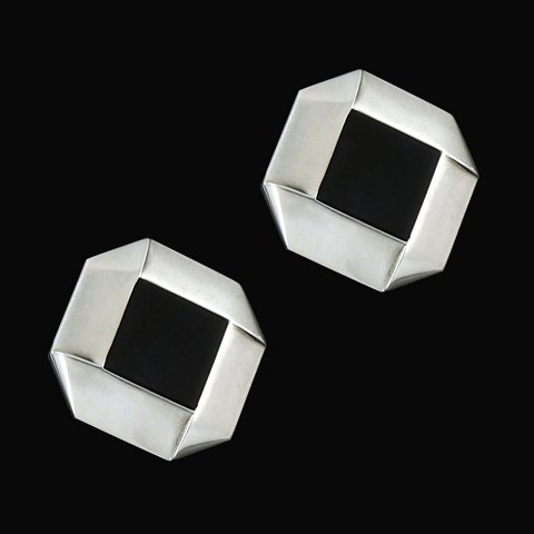 Georg Jensen. Øreklips i sterling sølv med Onyx #209 - Piazza - Allan Scharff