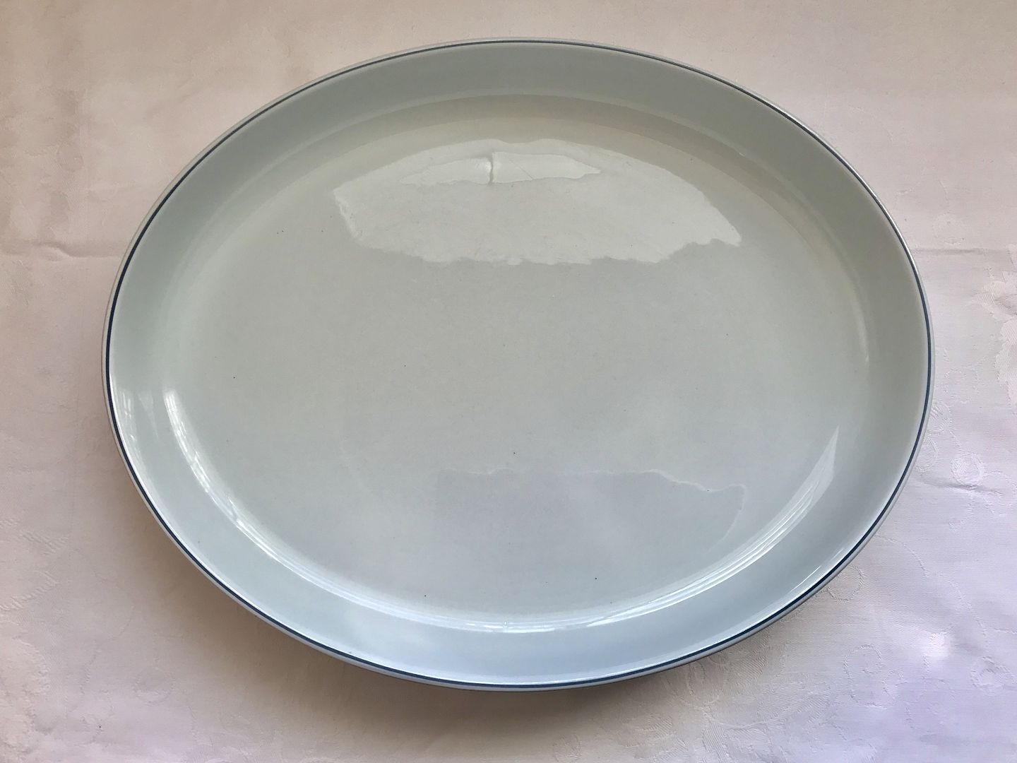| Royal Copenhagen, Aluminia, Blå kant, Ovalt fad #3079, 33,5cm bred, 26,5cm dyb, 6cm høj, Design Grethe Meyer *Med brugsspor*