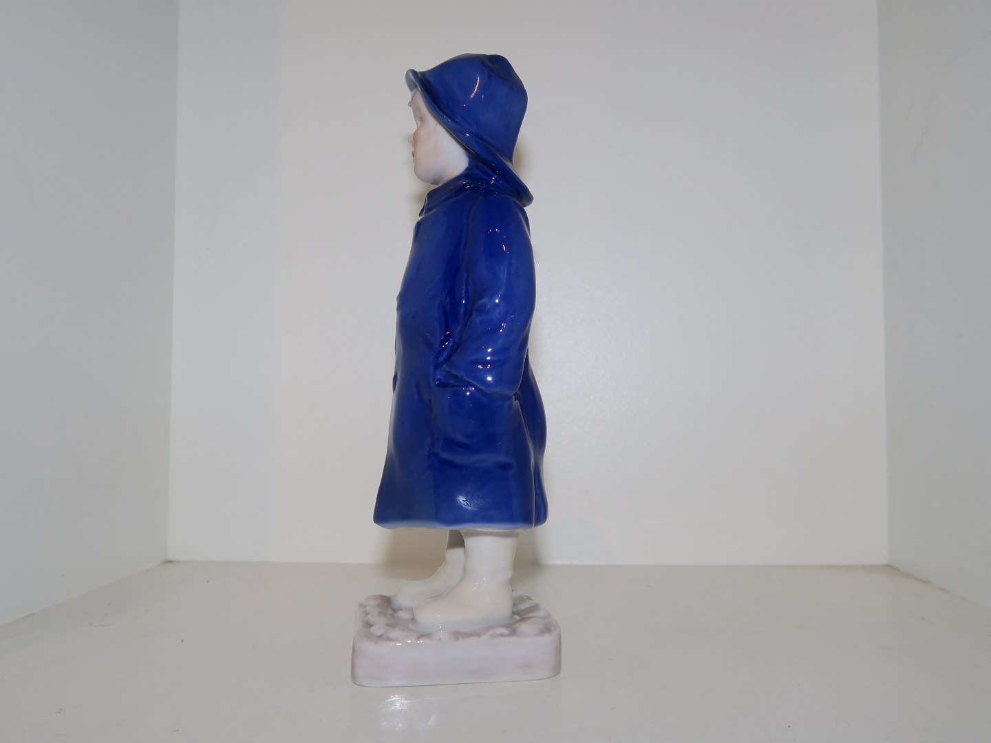 Bing & Grøndahl figur, dreng i blå regnfrakke.