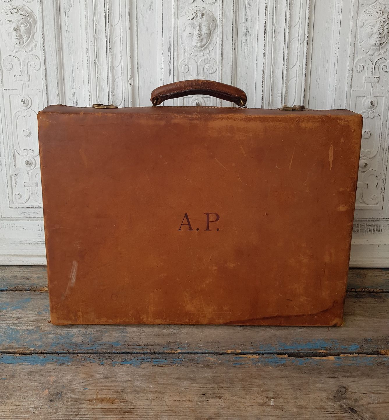 Vintage attachemappe i kernelæder med monogram "A.P."
