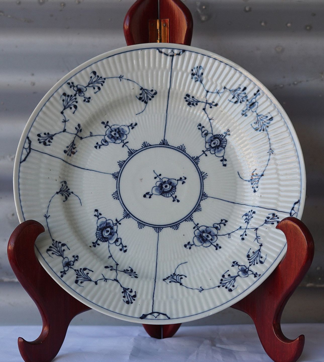 KGL. Riflet musselmalet middagstallerken, fra ca 1800