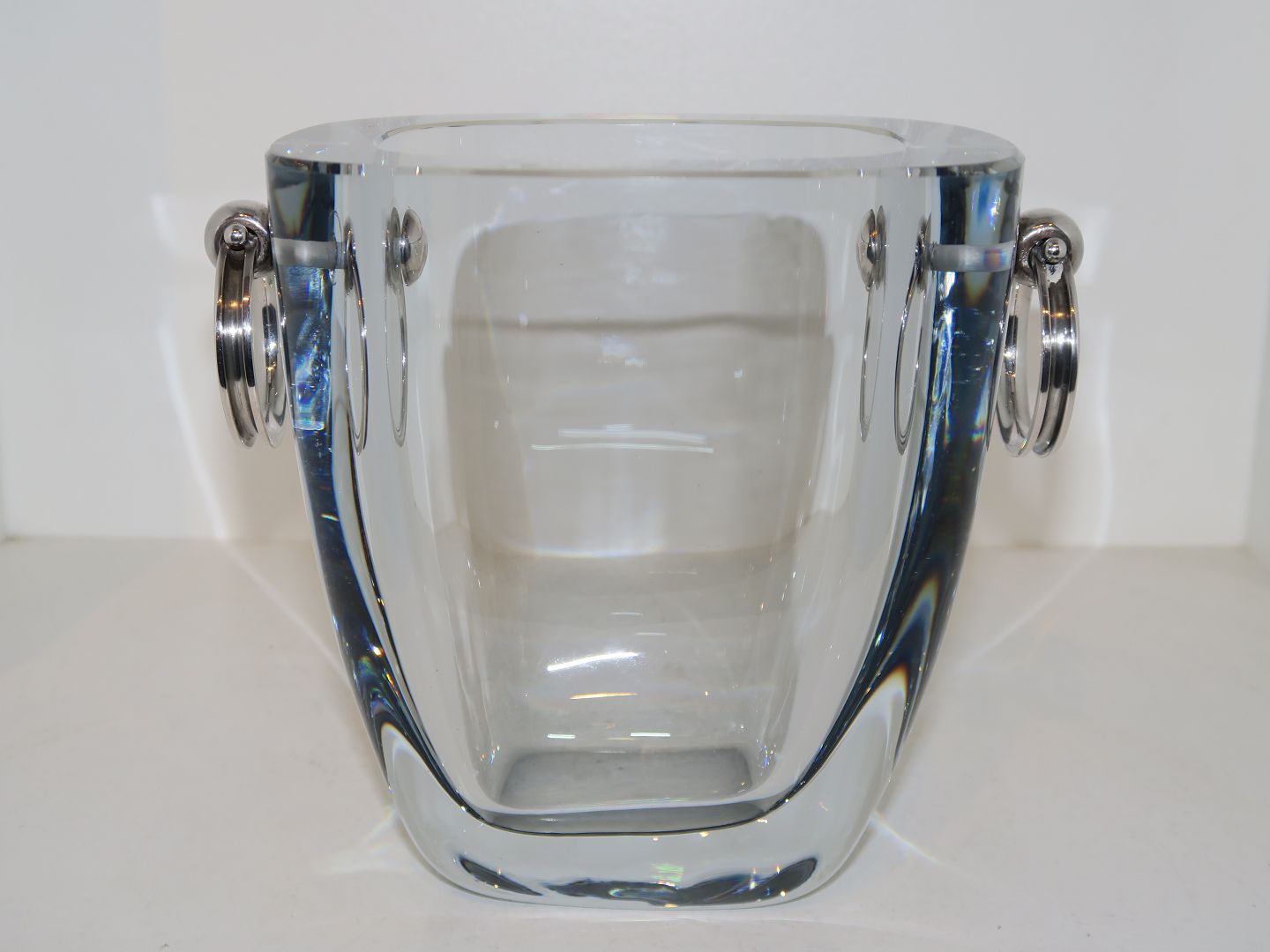 Strömbergshyttan kunstglas fra Sverige, isspand i kraftigt kundtglas monteret med sterlingsølv håndtag.