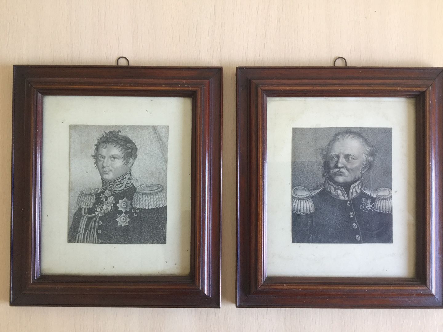 Begge indrammet i ens smukke mahogni rammer (18x16).
