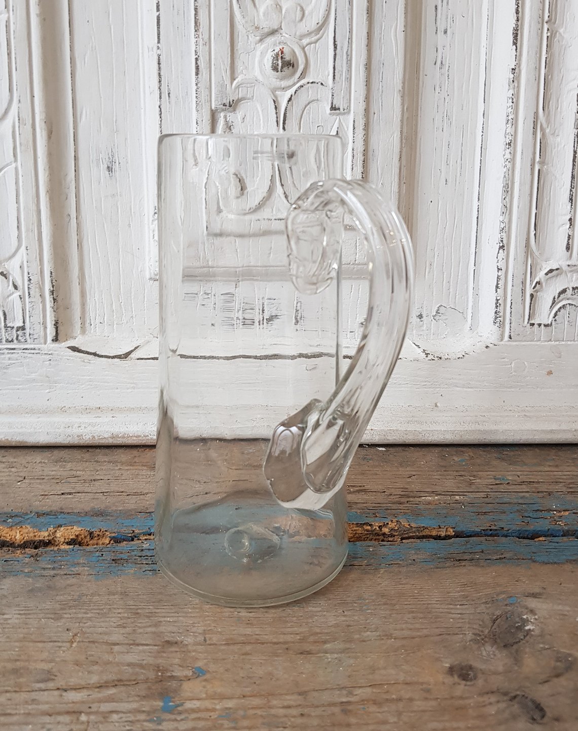 Gammel mundblæst glaskande med snoet hank.