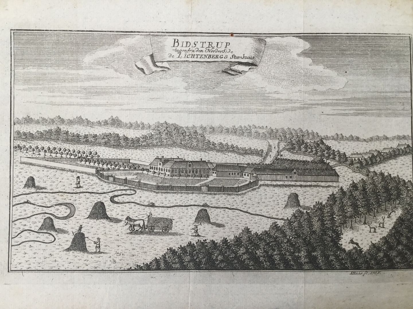 Bidstrup Hovedgård syd for Randers købtes 1748 af Etatsråd G.H. de Lichtenberg - det blev Stamhus fra 1763.