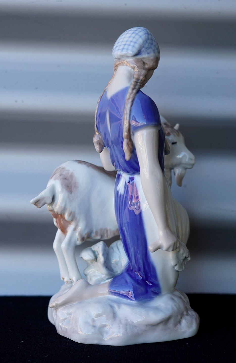 Figur i porcelæn med motiv af pige med ged. Nr. 2180