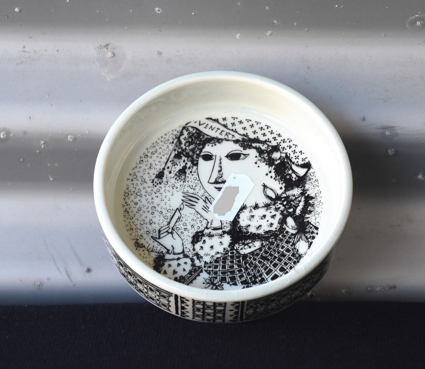 Rund skål, Årstiderne - (3027), dekor med sort streg
