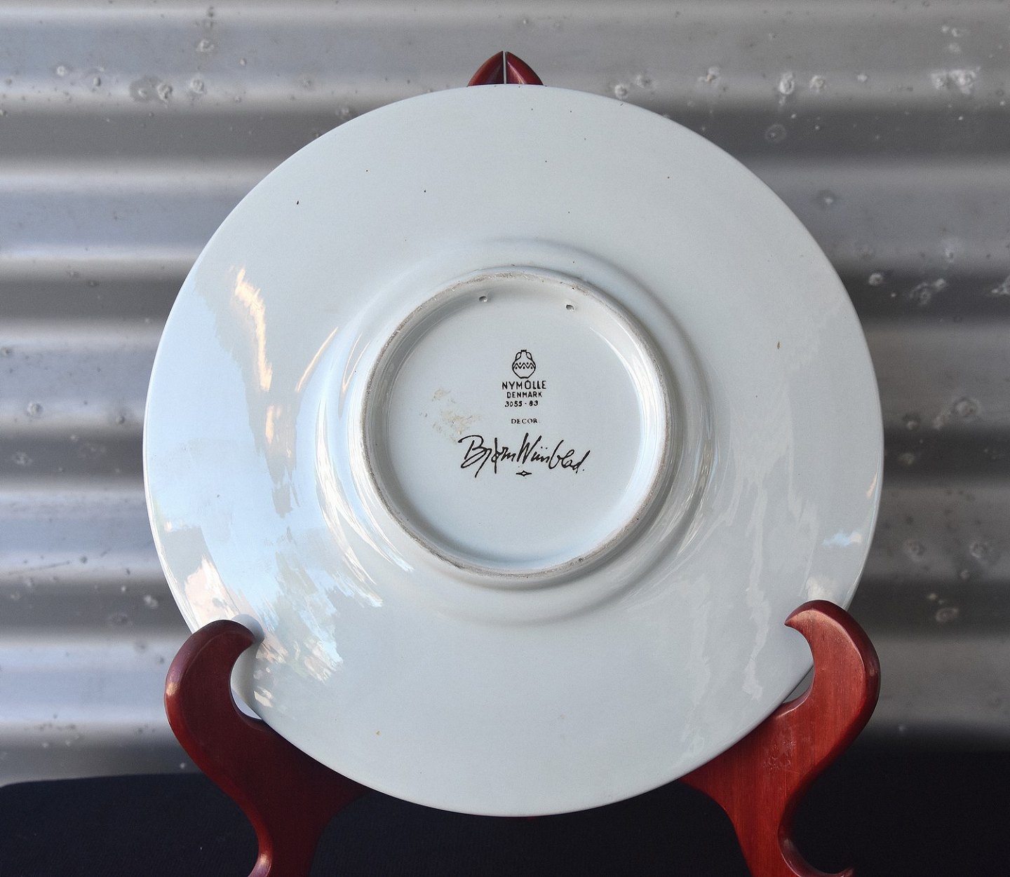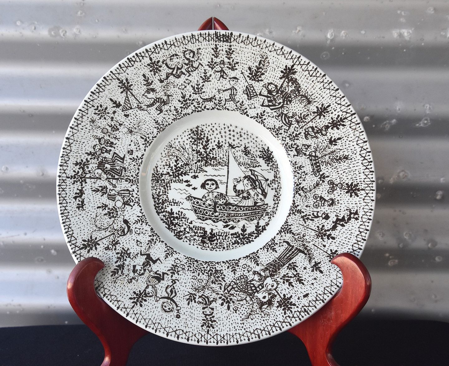 Rund platte, "Familie i båd", nr. 3055-83. Udført med brun dekor