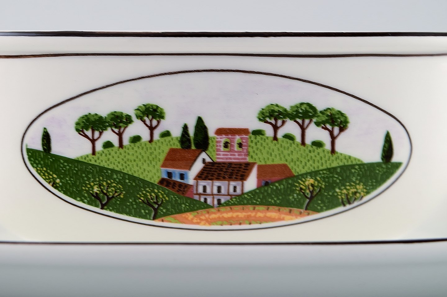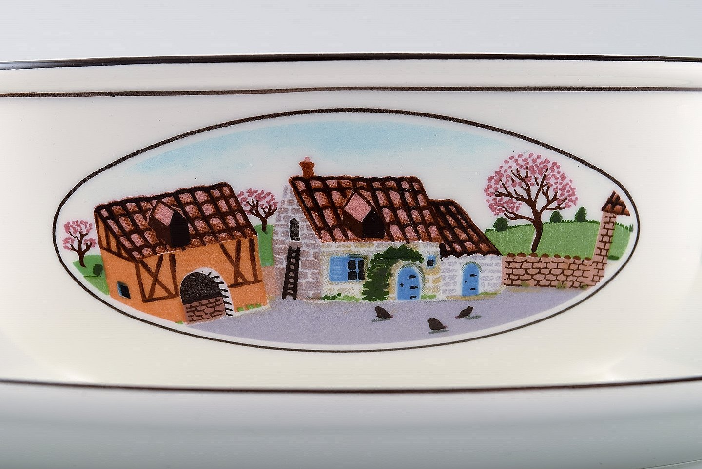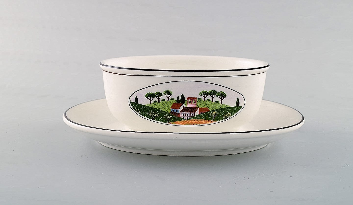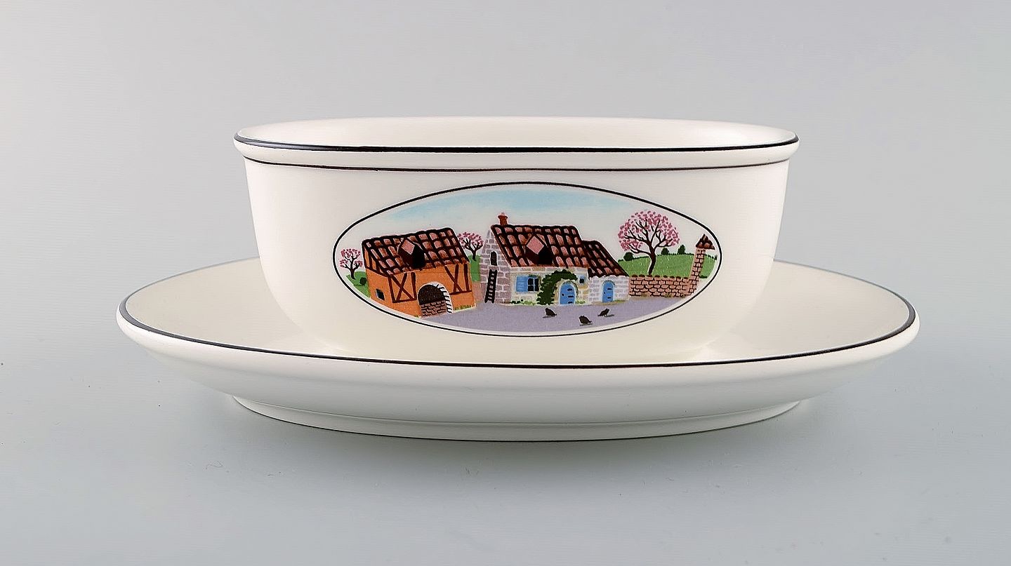 Villeroy & Boch Naif sovsekande på stand i porcelæn dekoreret med naivistisk landsbymotiv.