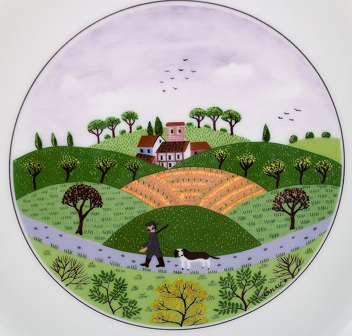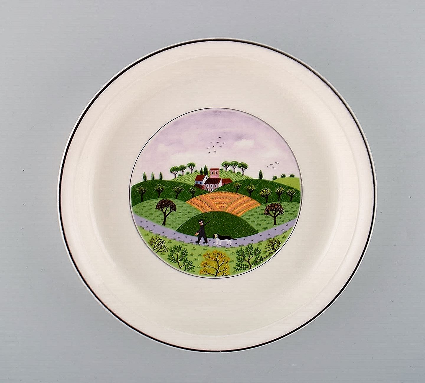 Villeroy & Boch Naif ovnfast fad i porcelæn dekoreret med naivistisk landsbymotiv.