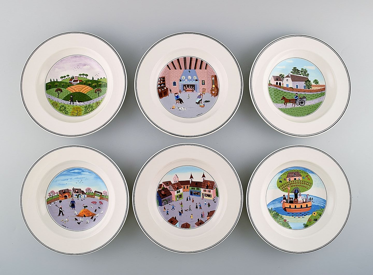 Villeroy & Boch Naif middagsservice i porcelæn. Et sæt på 6 dybe tallerkener dekoreret med naivistiske motiver.