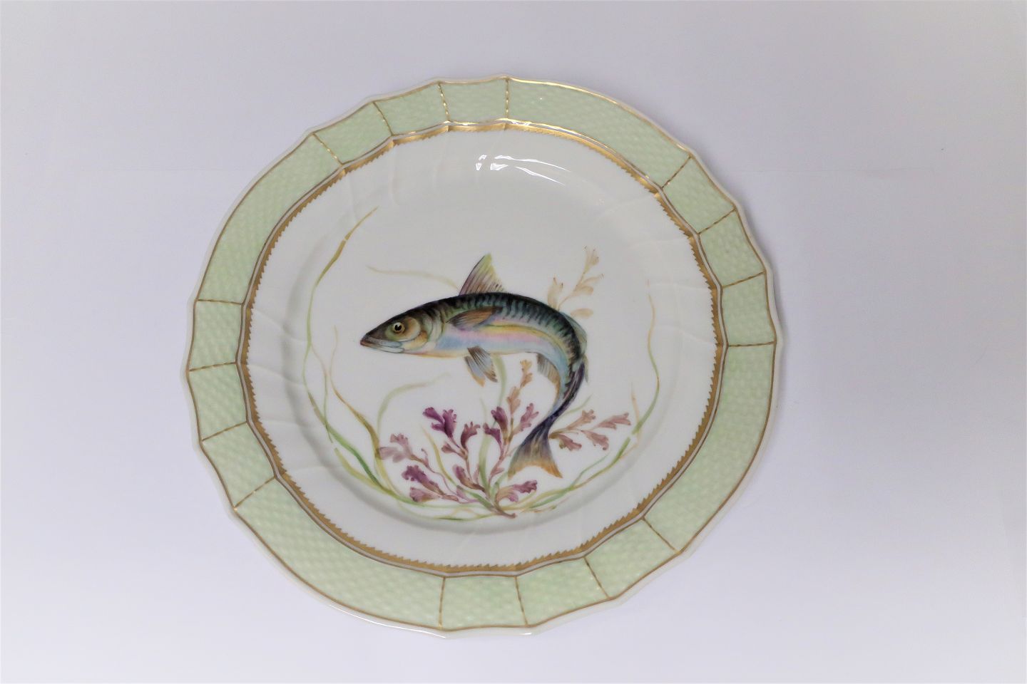 Royal Copenhagen. Fisketallerken med grøn kant. Model 919/1710. Diameter 25 cm. (1 sortering). Scomber scomber
