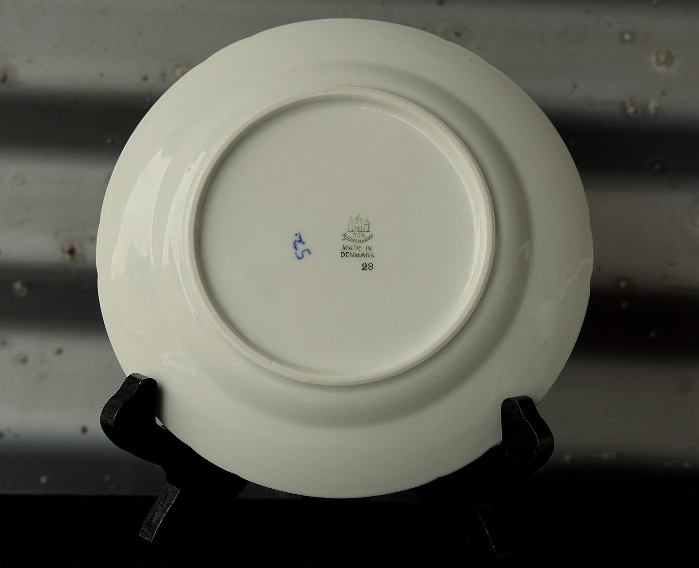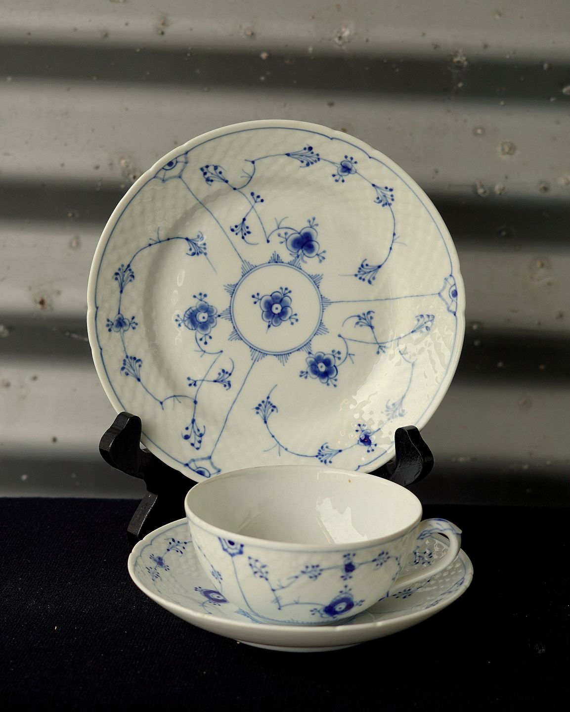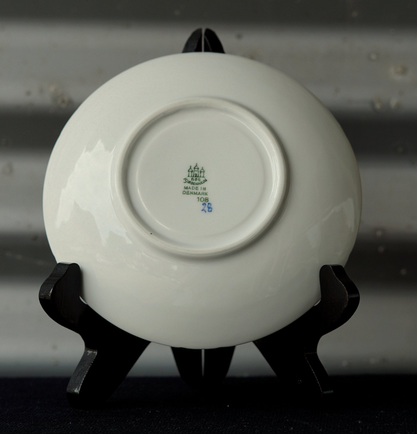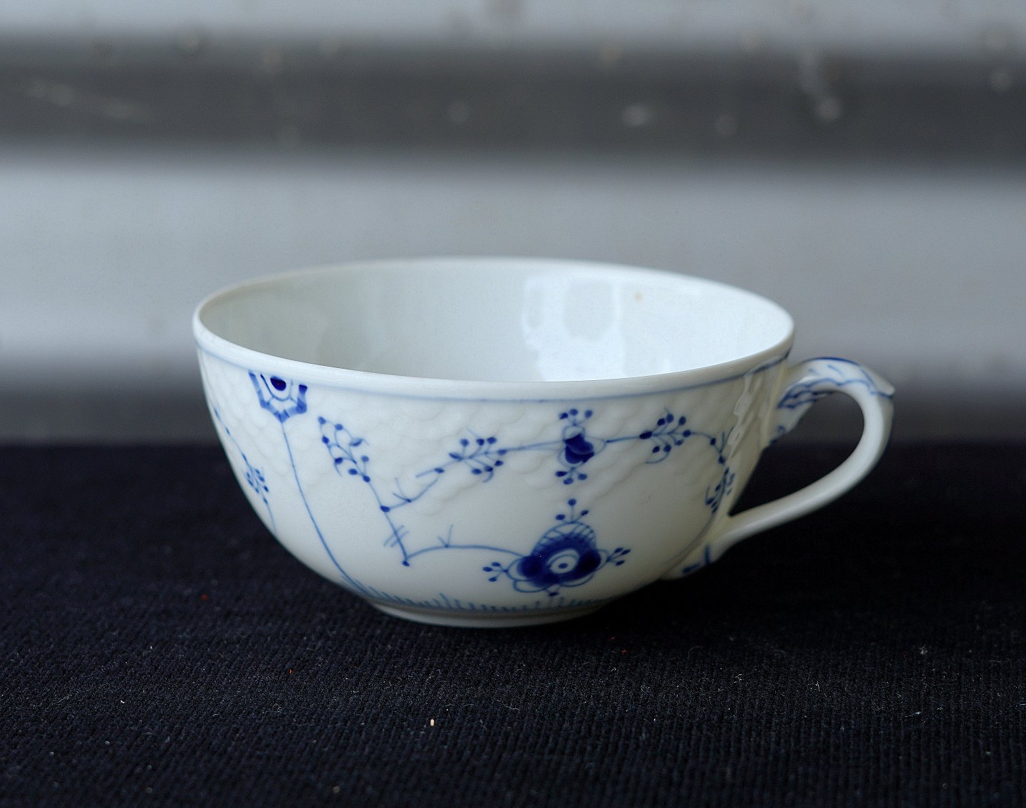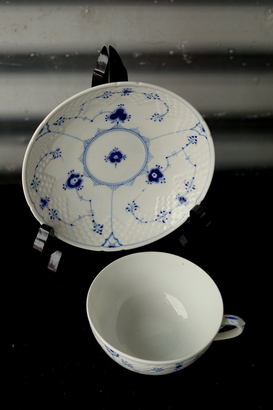 Blåmalet tekop med underkop kr 250 pr par, musselmaletservice, kop og underkop nr. 108.
