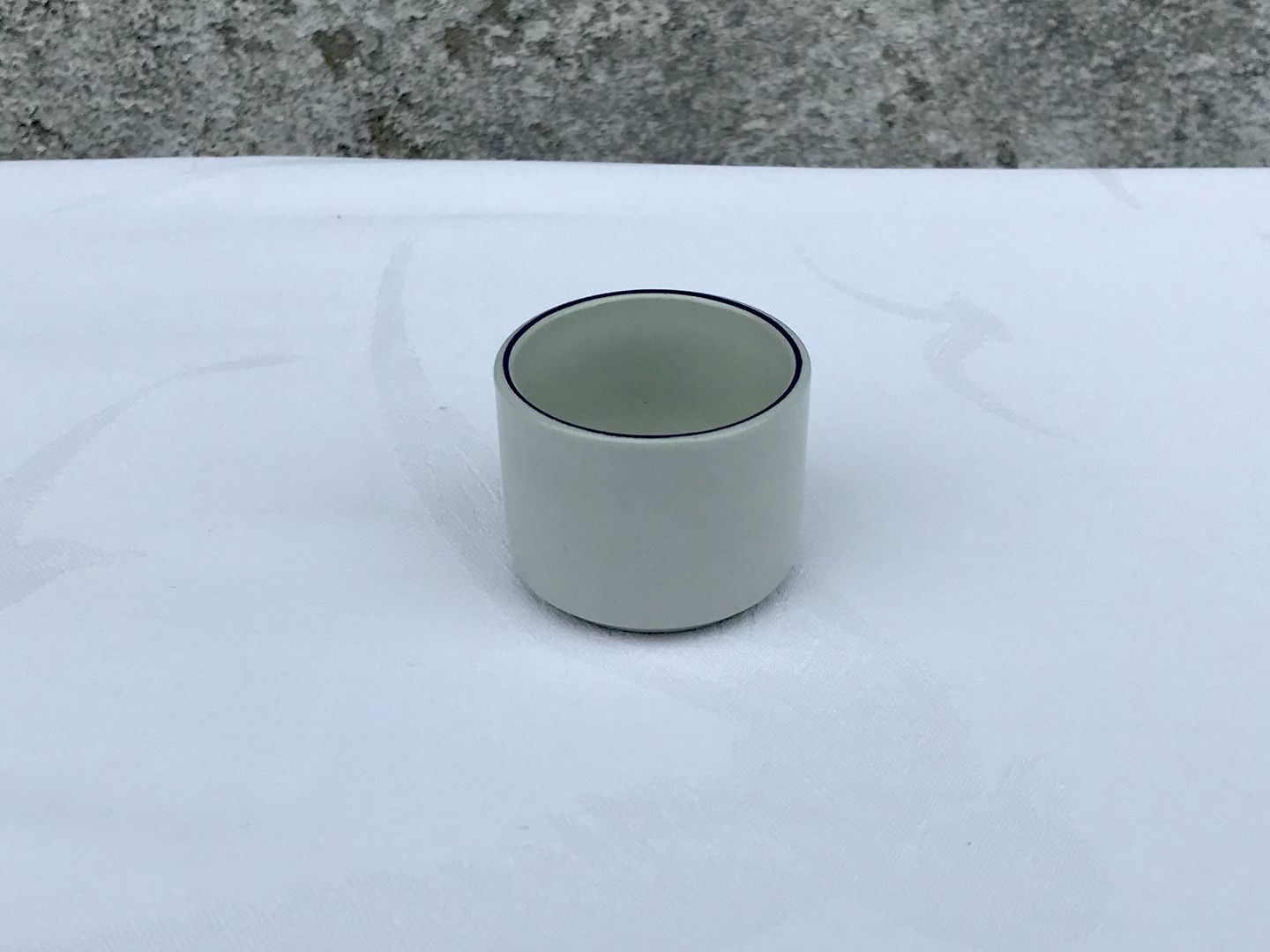 | Royal Copenhagen, Aluminia, Blå kant, Æggebæger, 3,5cm høj, 4,5cm i diameter, 1.Sortering, Design Grethe Meyer *Pæn brugt stand*